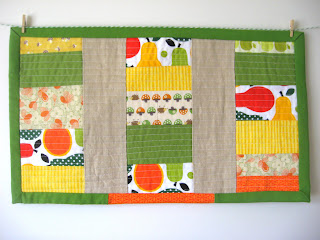 I has some leftover scraps sitting on my table after I sent out my SUTK package, and made this little potholder and little table runner.